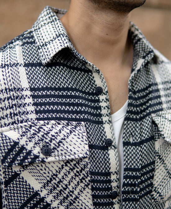 A shirt that makes its presence felt. The bold white and navy checks bring structure and style in equal measure. A versatile pick that layers well over a tee or works just as strong on its own.