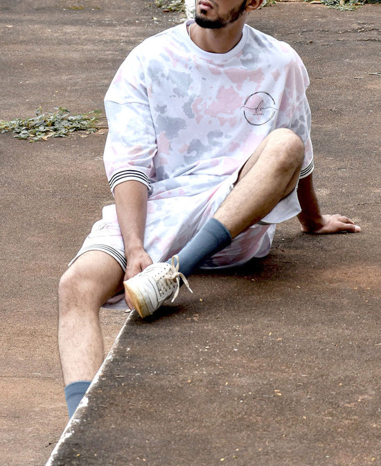 This vacation ensures you're ready for all the fun in the sun. Powerlook men's Tie-Dye print co-ords are sure to do just that! These printed co-ord sets feature oversized t-shirts and shorts with a striped hem, made with breathable cotton fabrics & reinforced stitching for years of wear.