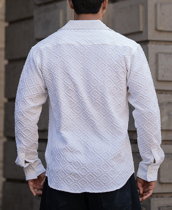 White Geometric Jacquard Shirt