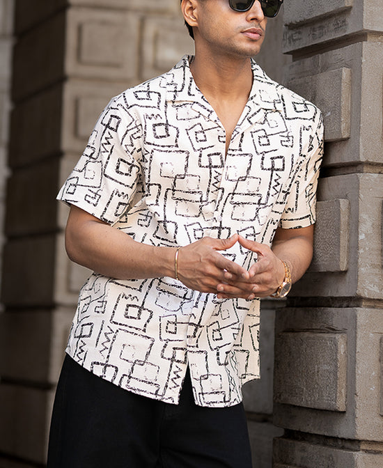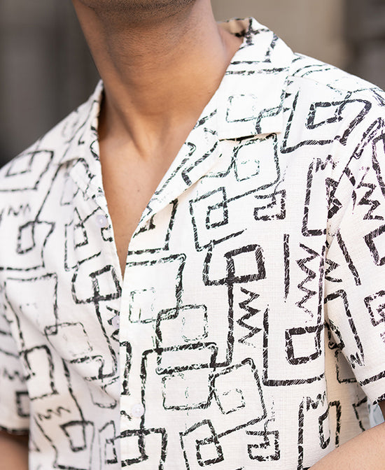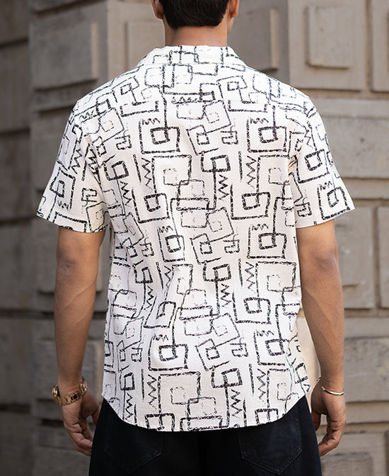 Geometric prints meet sharp style in this white half-sleeve shirt. The eye-catching pattern keeps it fresh, while the regular fit ensures all-day comfort. Perfect for casual hangouts, vacations, or when you want to add some fun to your outfit. Wear it with solid jeans or chinos for an effortless, well-balanced look.