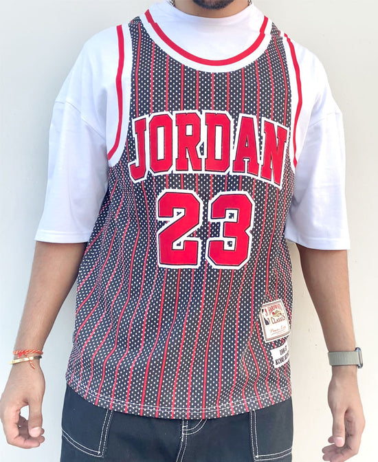 Show off your stylish and good taste to the world. Be unique with this Jordan vest print oversized t-shirts for men. This is a classic type of t-shirts that are designed with premium cotton fabric with drop shoulder sleeves to show that everyone can wear it. You will be more charming when you wear this oversized t-shirt with denim and casual shoes.
