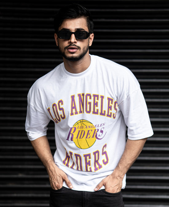 White Los Angeles Riders Print Oversize Drop Shoulder T Shirt