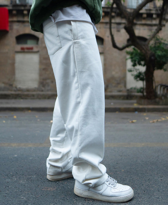 This isn’t your gym track pant. With a white base and bold graphic print, these are built for sneaker photos and late-night drives. Oversized, over-comfortable, and unapologetically extra—perfect for days when you want your lower half to do the talking.