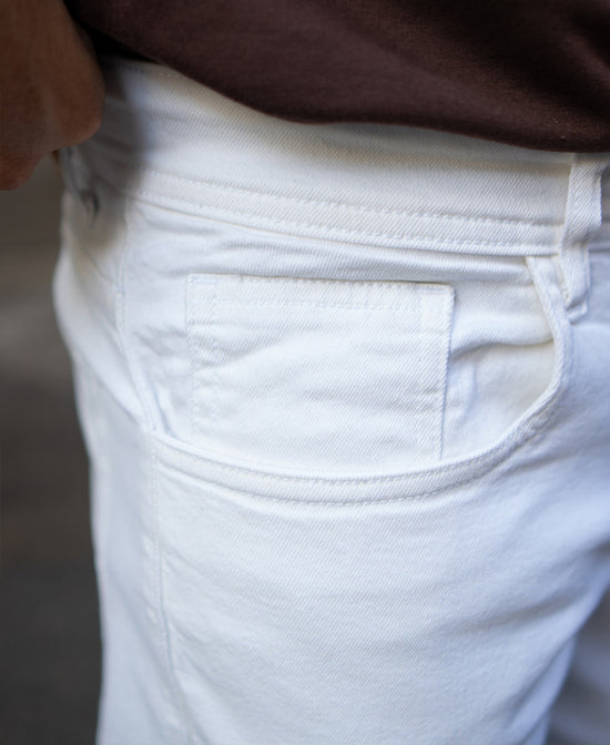 Brighten up your denim game with the White Regular Fit Denim. Cut from sturdy yet breathable fabric, it offers a clean silhouette that moves easy and wears even easier. Perfect for casual days or dressed-up nights, it is the fresh essential that ensures comfort and elegance to every occasion.