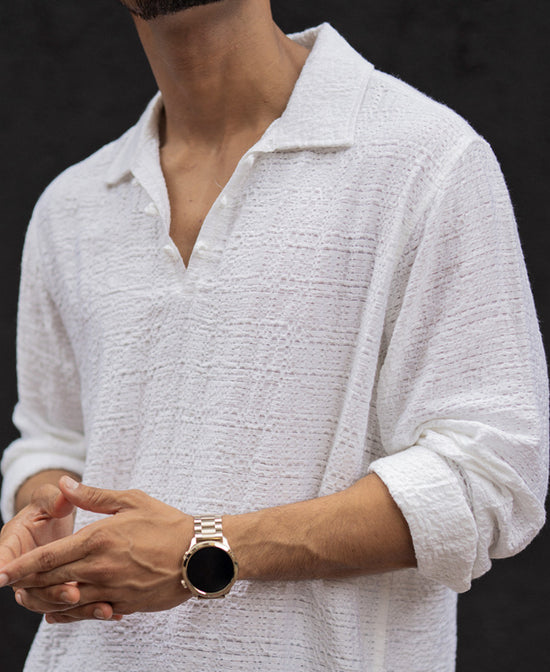 White Regular Fit Full Sleeves Kurt Style Shirt
