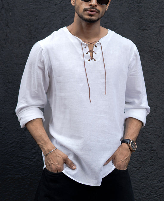 Blending classic and modern, this white hooded kurta-style shirt brings a fresh twist to casual wear. Crafted entirely from 100% cotton, it combines the softness of cotton with a unique henley neck and hooded style, creating an outfit staple that’s both distinctive and comfortable. With a regular fit that’s easy to move in, it’s ideal for days when you want style without fuss.