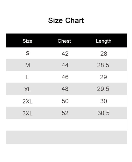 | Size | Length (in) | Chest (in) | |