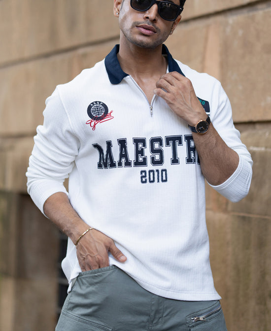Crisp, cool, and designed to stand out quietly. This white structured tee features a subtle graphic that adds depth without taking away its minimal appeal. Made from premium cotton with a defined drape, it’s the perfect base for layering or wearing on its own. A refined staple that feels fresh every time.