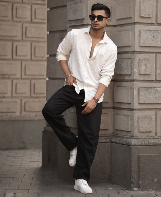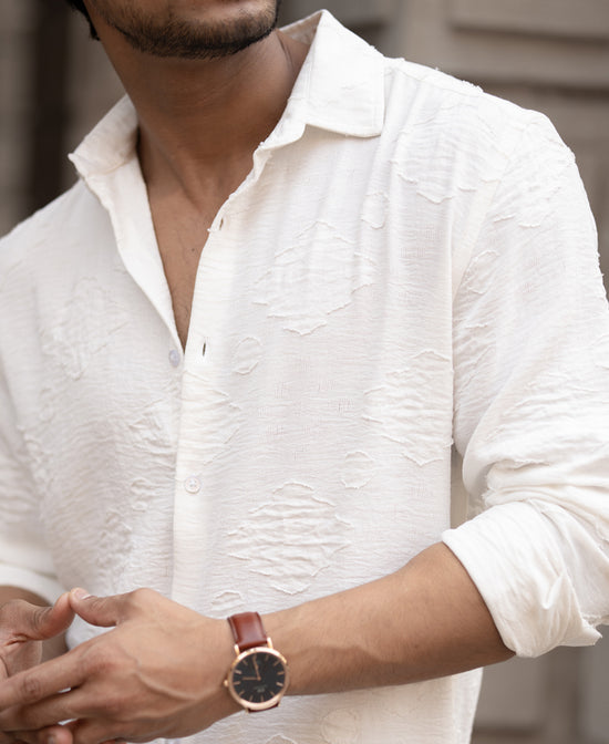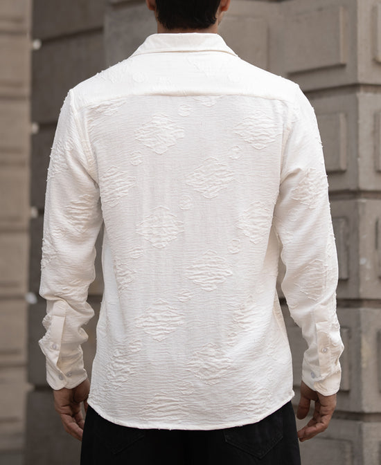 White Geometric Jacquard Shirt
