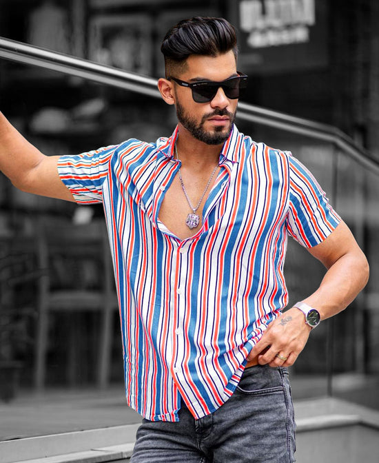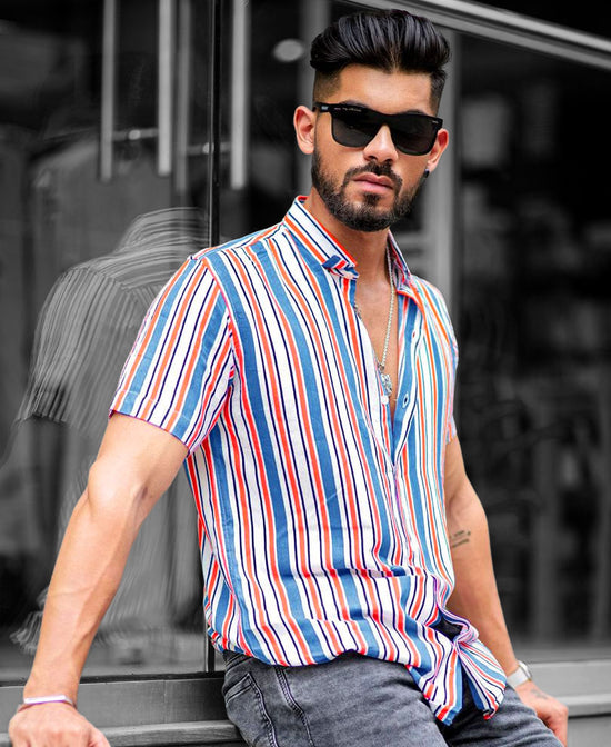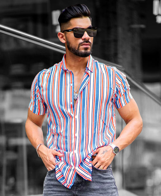 A white shirt is a classic choice for summer, but it's also versatile enough to be worn throughout the year with a multi-color stripe. This striped shirt will add some fun to your wardrobe that features a vertical striped print, half sleeves, and a curved hem in a regular fit. These vertical striped shirts are best to pair with denim jeans and shorts with casual sneakers for a complete urban look.