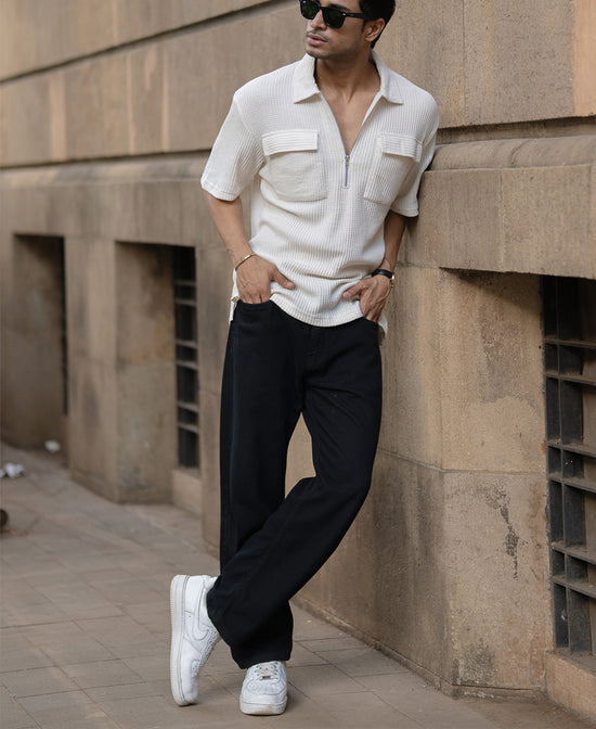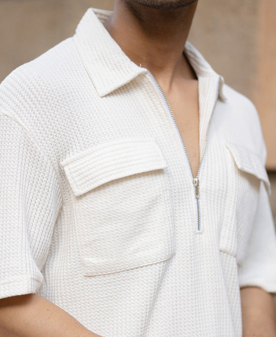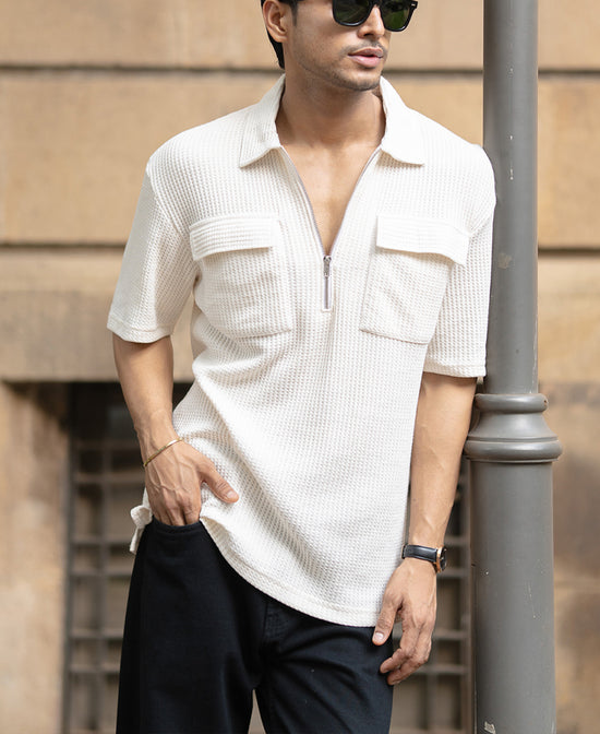 White Zipper Polo With Pockets