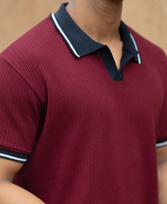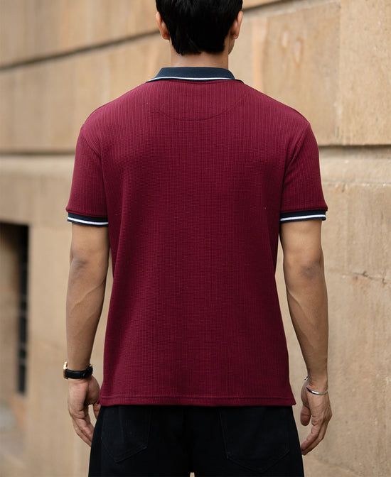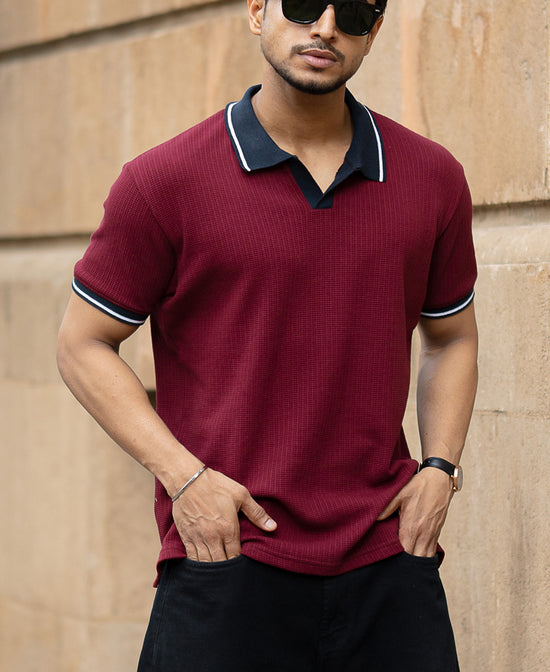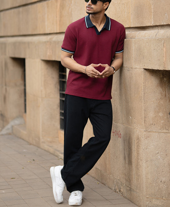 A little contrast goes a long way. This Wine Contrast Collar T-Shirt is equal parts refined and relaxed. The rich wine tone gives depth; the sharp collar adds pop. It’s that rare tee that feels casual yet collected like you didn’t try too hard, but still crushed it.