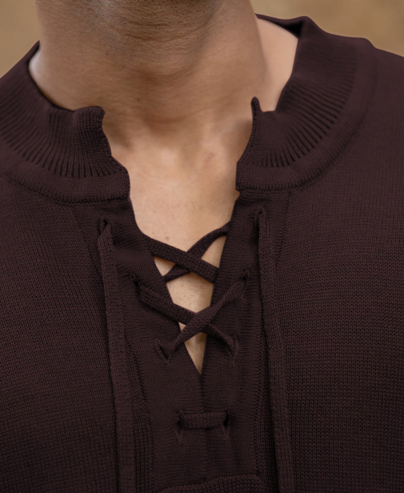 Wine Knitted Henley T-Shirt