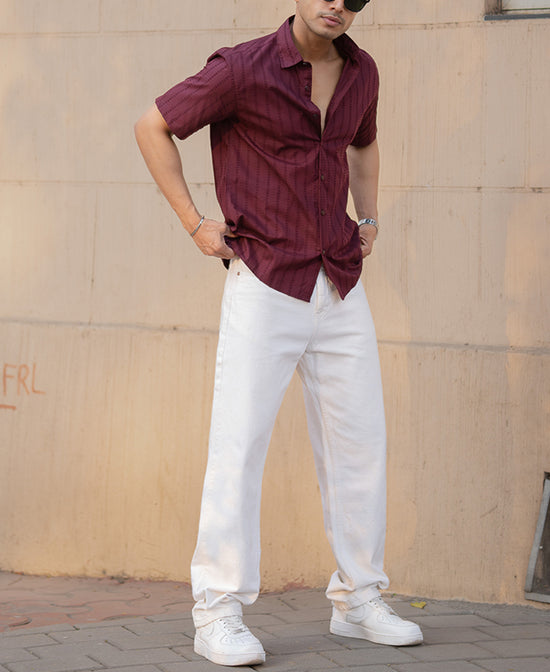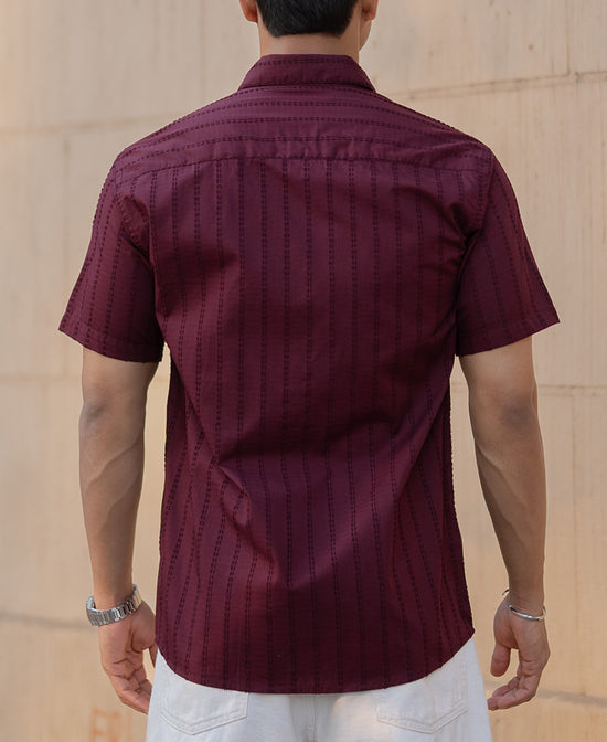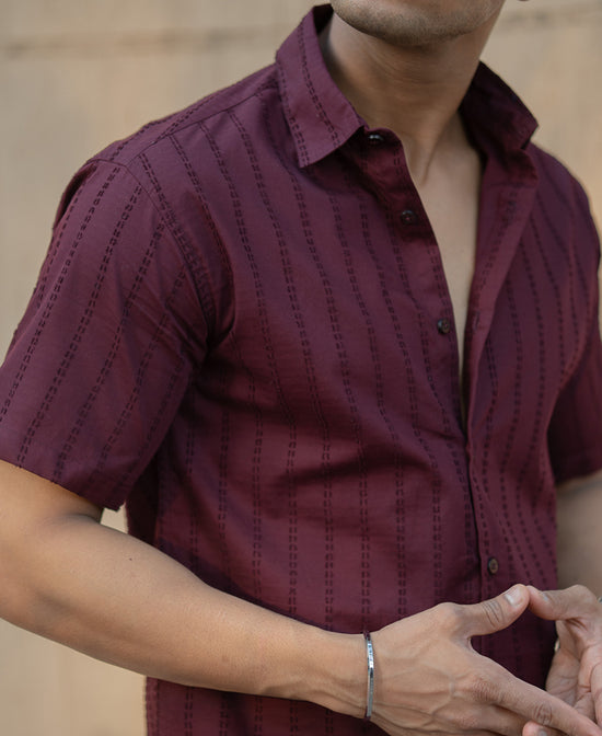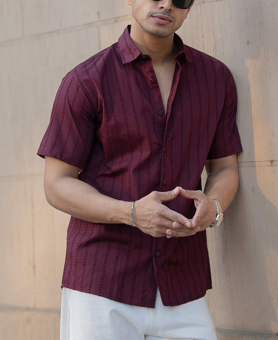 Rich color, effortless style. This wine half-sleeve shirt brings a refined yet casual look with its deep shade and regular fit. Perfect for occasions where you want to stand out subtly. Classic, comfortable, and always stylish.