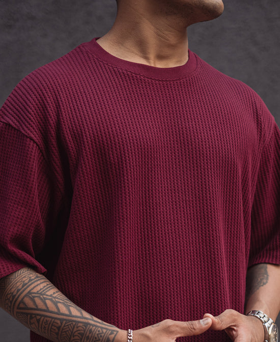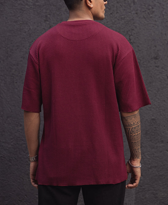 Wine Structured Oversized Half Sleeves T Shirt