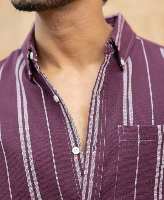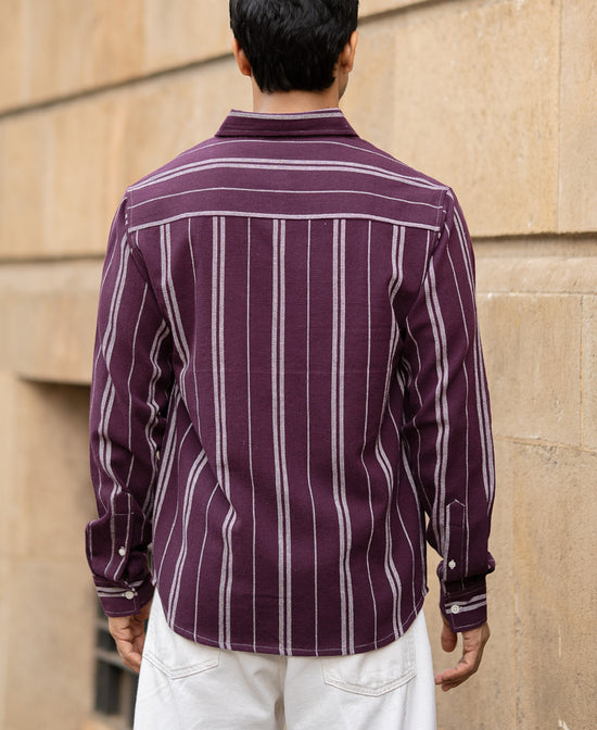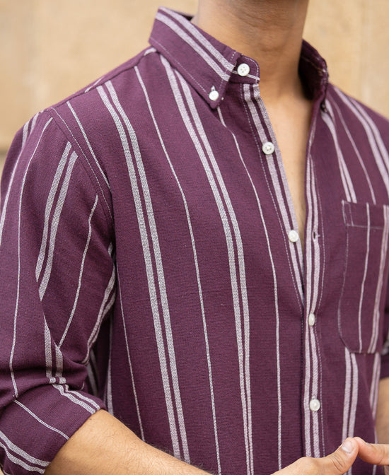 Add a refined touch to your look with this Wine Structured Stripe Shirt. Featuring vertical stripes for a sharp silhouette, this button-down is both modern and versatile. Pair with light chinos or denim for an effortlessly smart ensemble.
