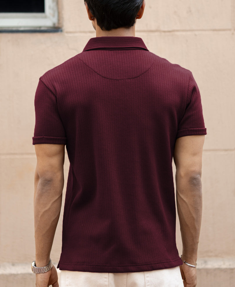 Indulge in refined comfort and timeless sophistication. The wine shade in this polo brings instant elevation, while the zip-neck detail keeps things modern and sharp. Tailored fit with breathable comfort; perfect for dinner dates, late evenings, or whenever “subtle flex” is the vibe.