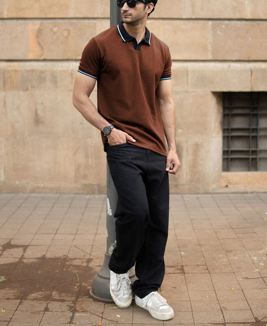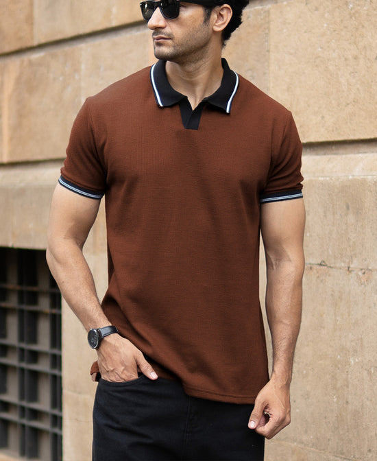 A little contrast goes a long way. This Brown Contrast Collar T-Shirt is equal parts refined and relaxed. The rich brown tone gives depth; the sharp collar adds pop. It’s that rare tee that feels casual yet collected like you didn’t try too hard, but still crushed it.
