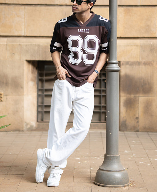 This dark brown rugby tee takes cues from vintage game-day gear, then turns it into something you’d wear to the streets. Bold "89" graphics, jersey-style paneling, and attitude stitched into every seam. Wear it oversized, own the field.