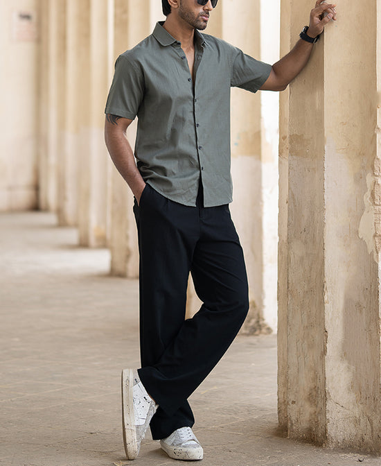Breezy, bold, and built to go with the flow. This Green Lightweight Shirt brings effortless charm with its breathable cotton fabric, relaxed fit, and refined collar. Finished with curved side hems for a clean yet easygoing look, making it just perfect for any setting.