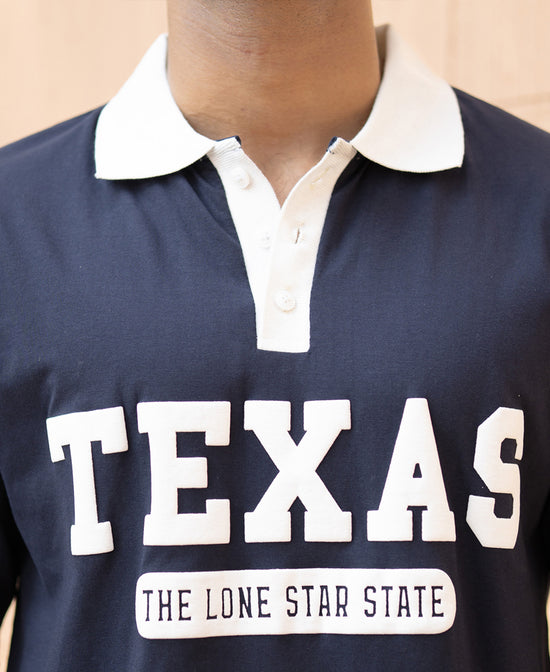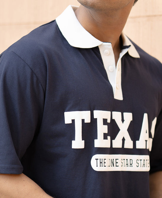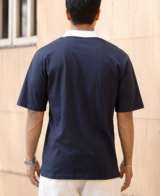 Navy Contrast Print Polo T-Shirt