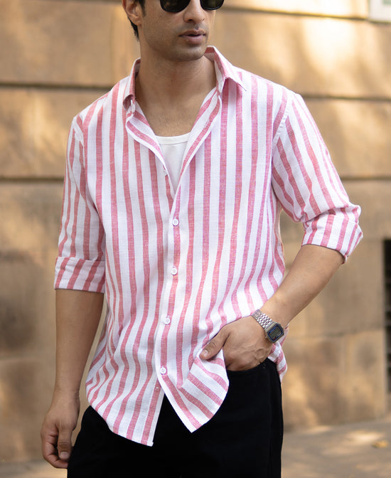 Old-school sailor vibes, new-school swagger. This red nautical stripe shirt brings in classic stripes with a fresh twist. Crisp, clean, and ready for action—whether that’s a weekend hangout or a last-minute plan.